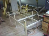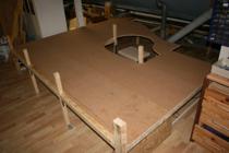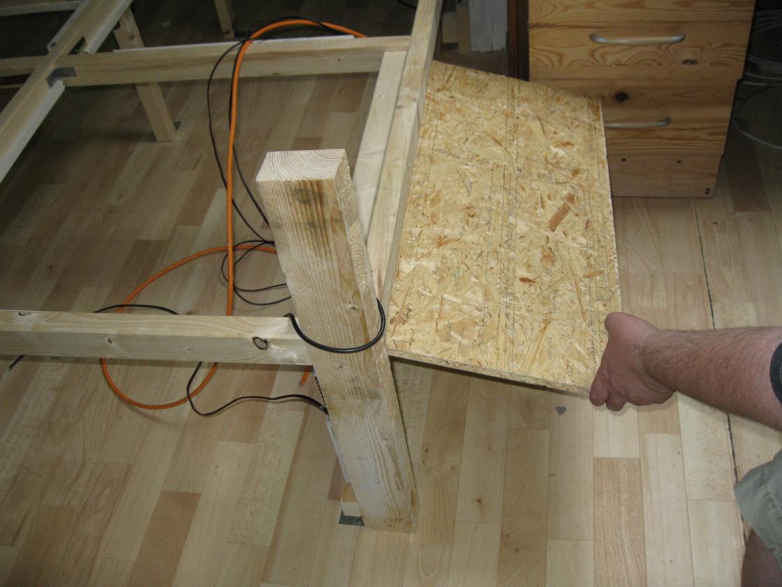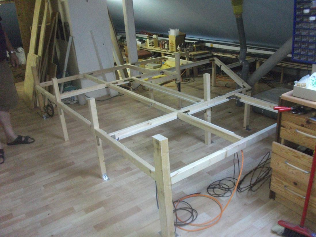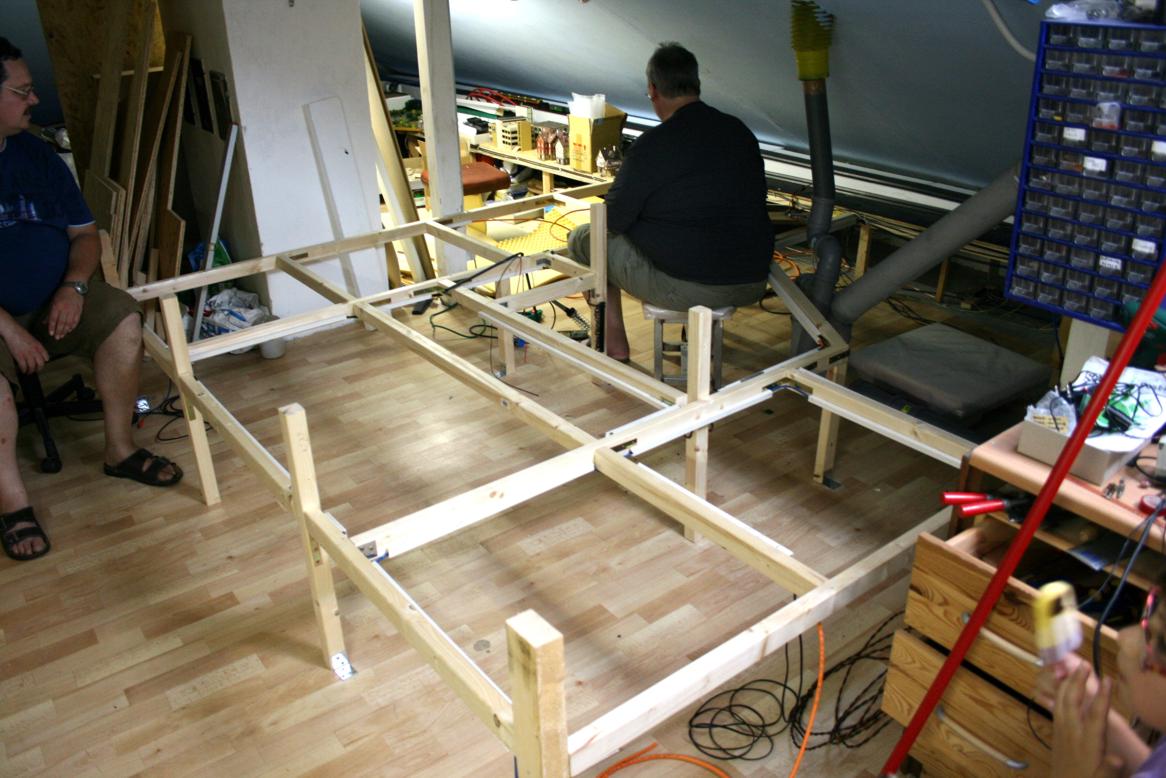 Der Zusammenbau des Unterbaus hat begonnen. Eine Platte durfte schon zur Probe liegen. Unter tatkräftiger Hilfe von Julia ging gleich alles viel schneller und besser. |