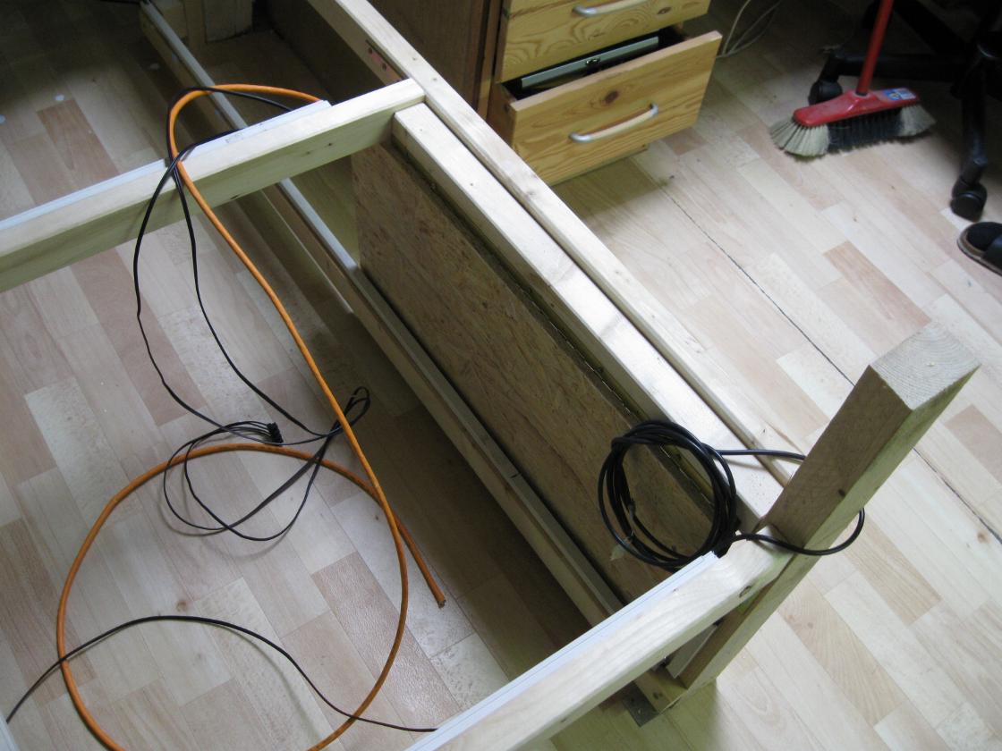 Nach dem die Grundverkabelung soweit montiert war, ging es darum einen Platz für die Dekoder zu finden. Zwei Plätze kommen dafür in Frage. Ausserdem sollten die Plätze komfortabel erreichbar sein. Die beiden Platten haben wir mit Schaniere so befestigt, dass sie nach oben geklappt werden kann. Damit ist ein bequemeres arbeiten möglich. |
