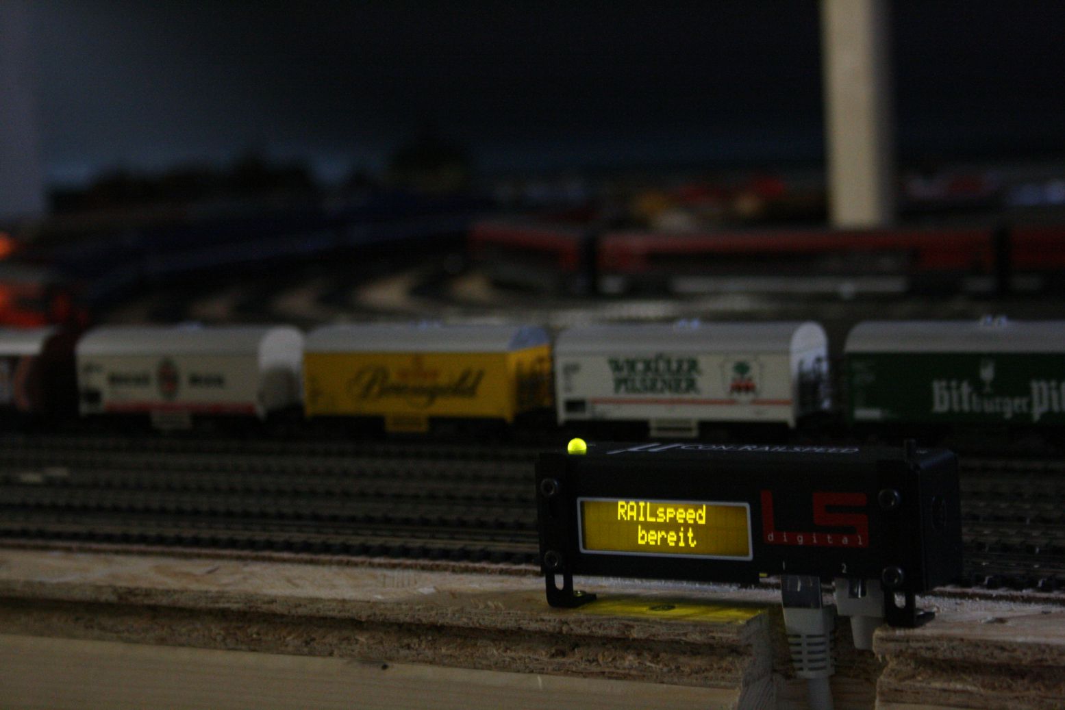 Ein Gerät zur Einmessung von Loks wurde am äußersten Gleis montiert. Dieses ist auch im weiteren Verlauf des Anlagenbaus immer gut zugänglich. Daher wählten wir diesen Platz. Das Einmessen ist für einen automatischen Betrieb per Software notwendig um die Züge punktgenau an Signalen anzuhalten. Mehr dazu später im Bereich Software und/oder Hardware. |