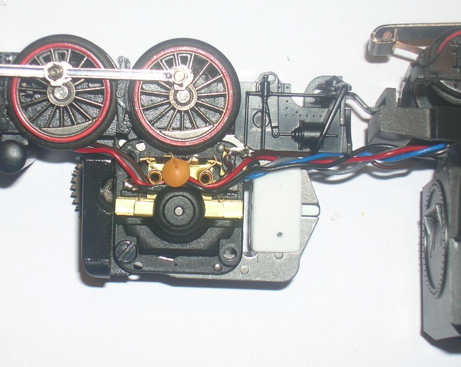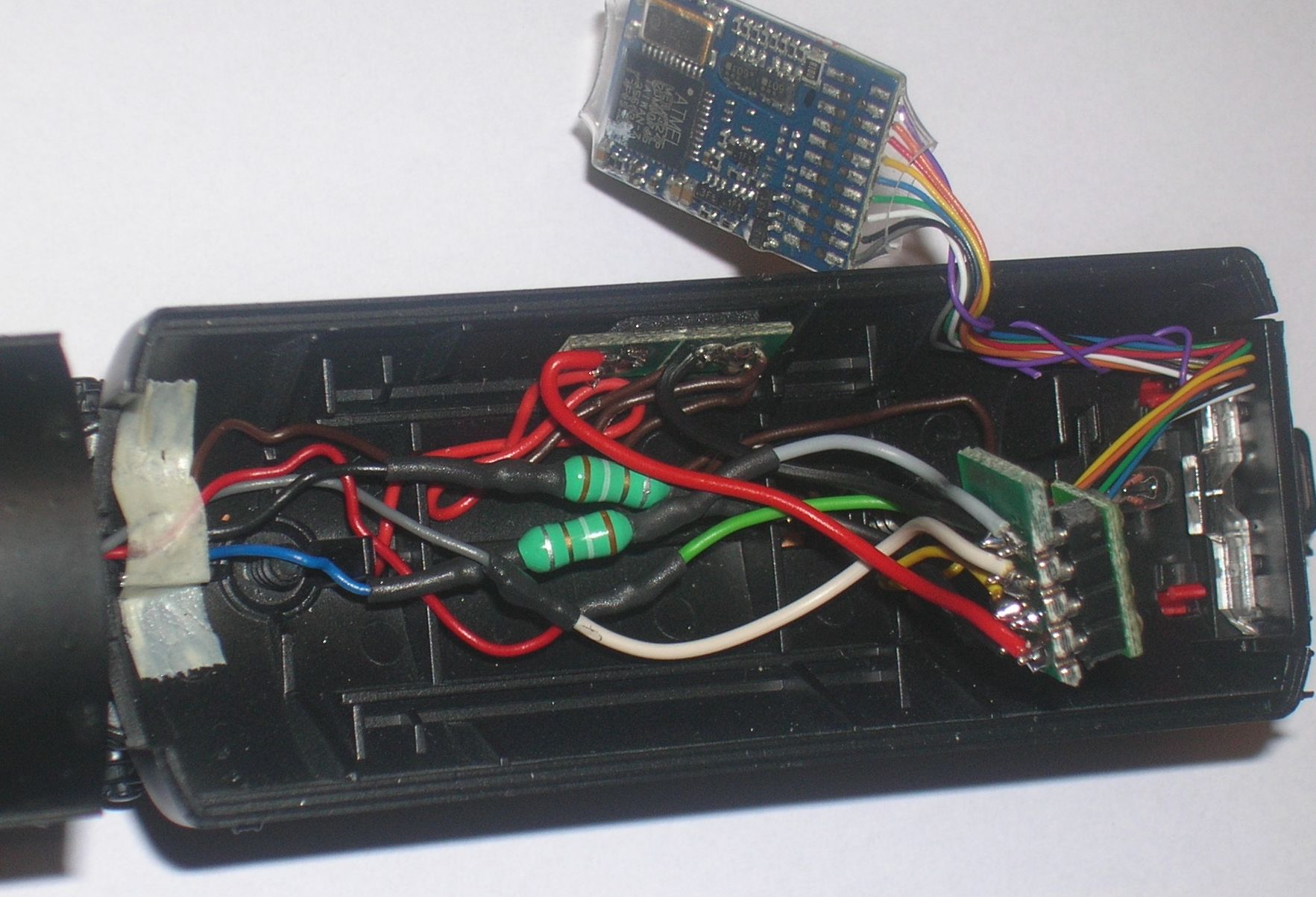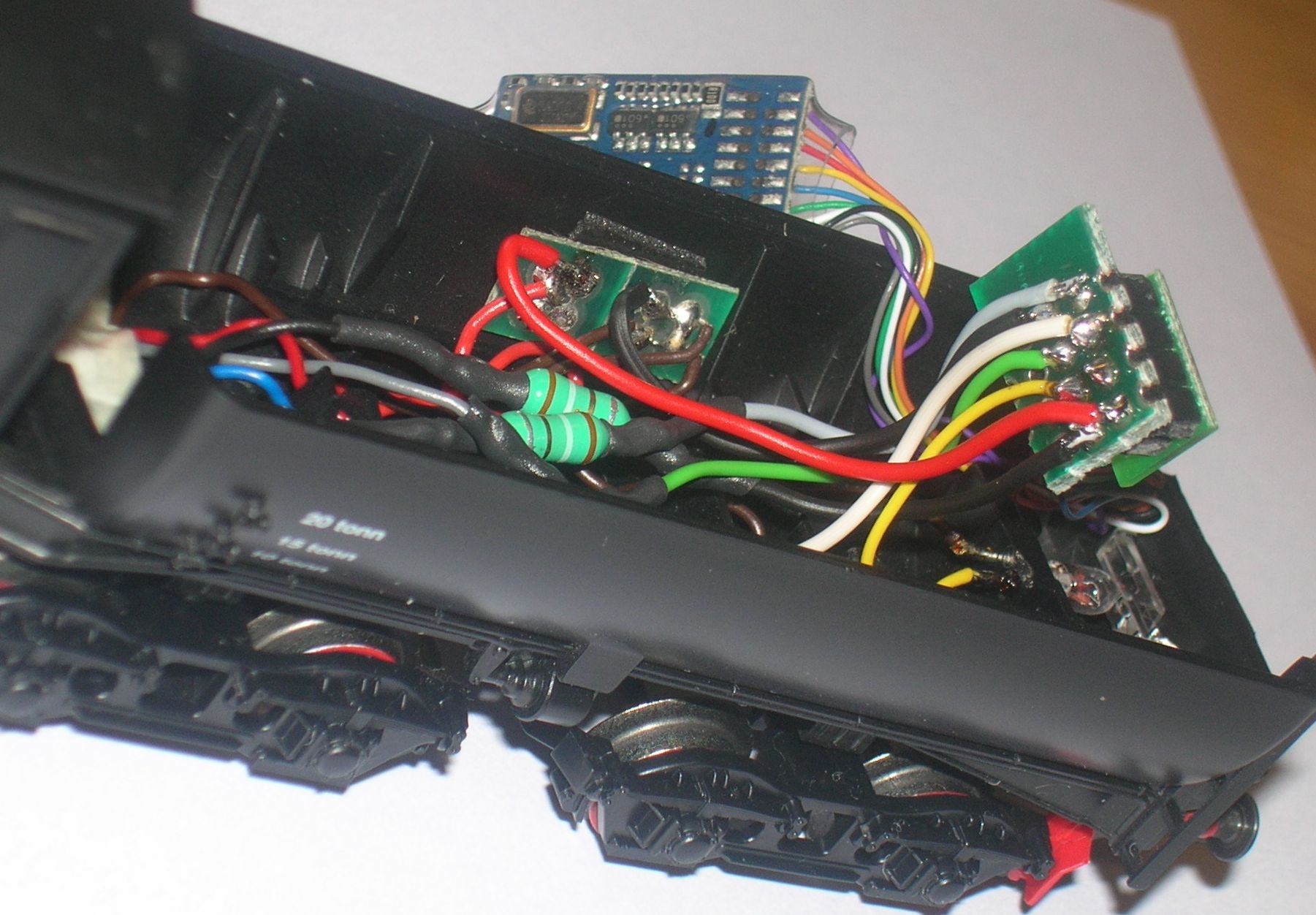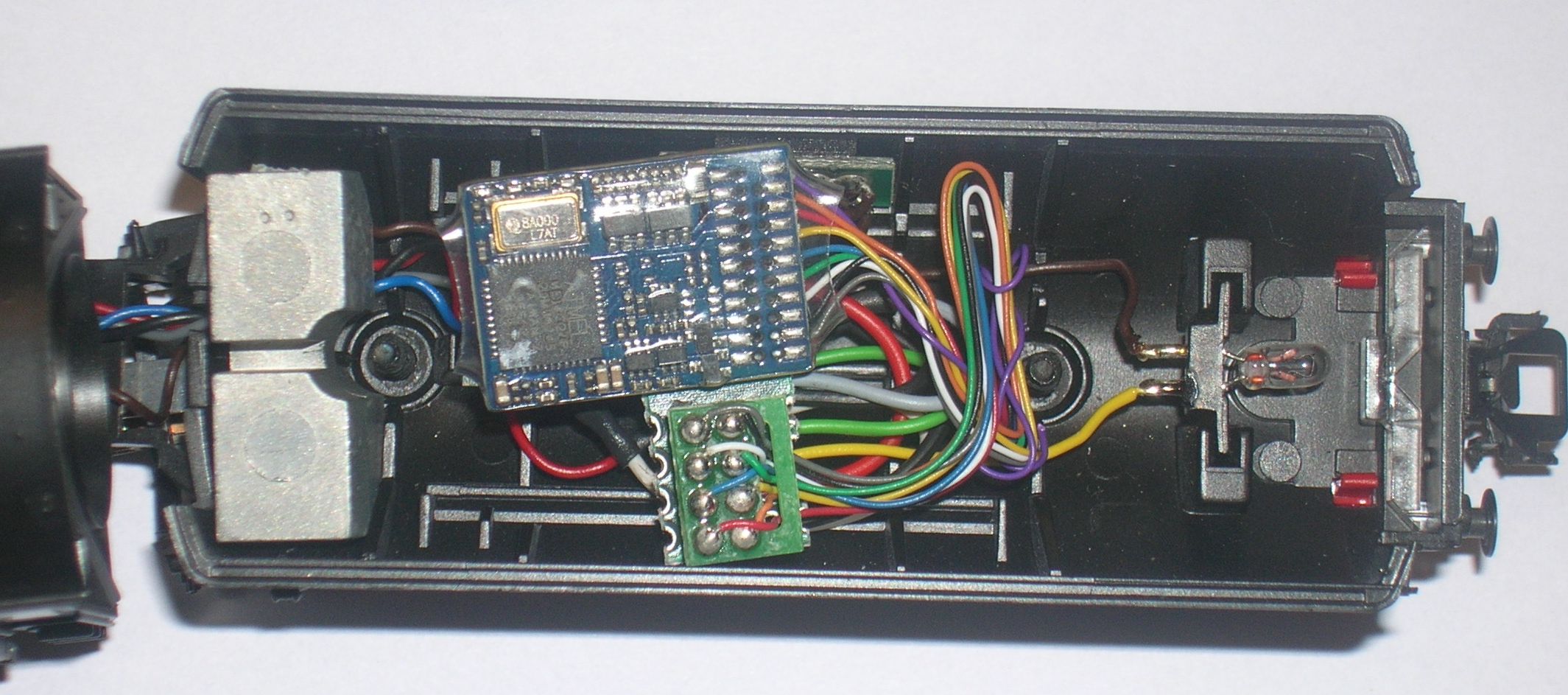Masse = Lokgehäuse. Blauer Draht (U+) vom Decoder nicht verwendet.