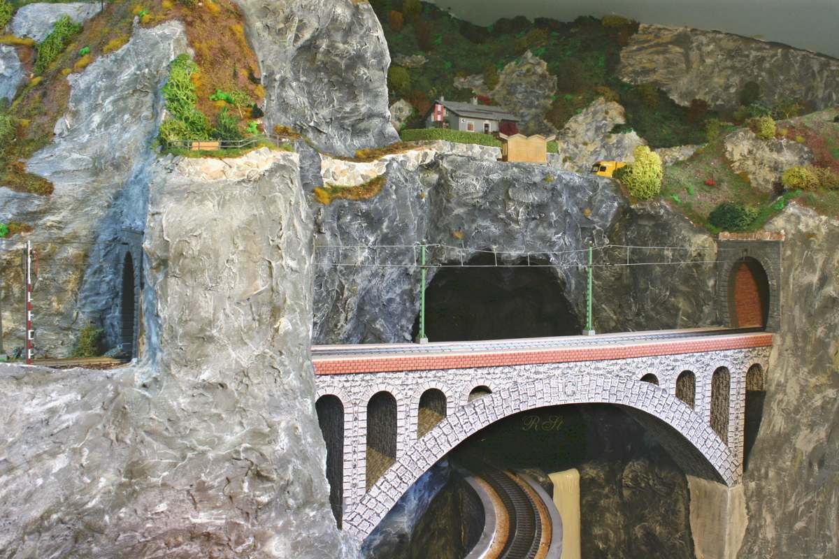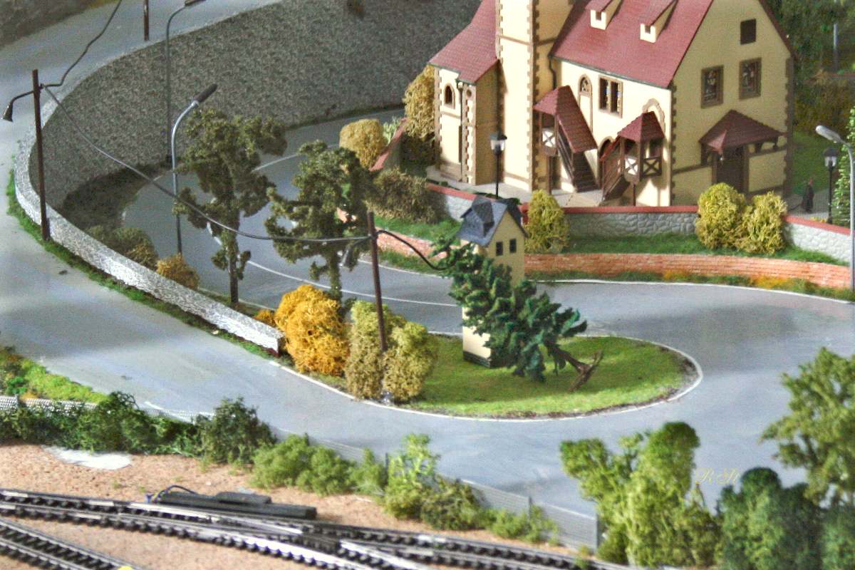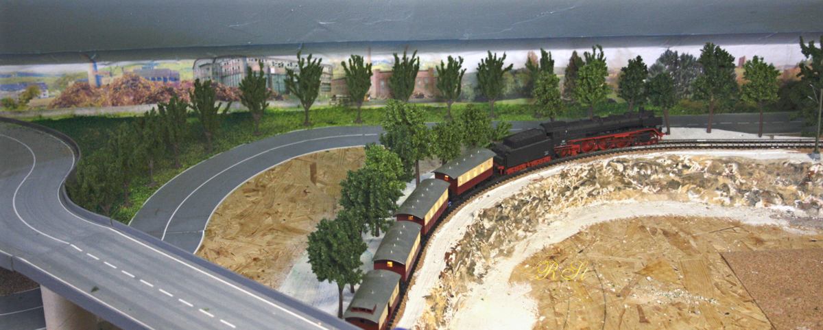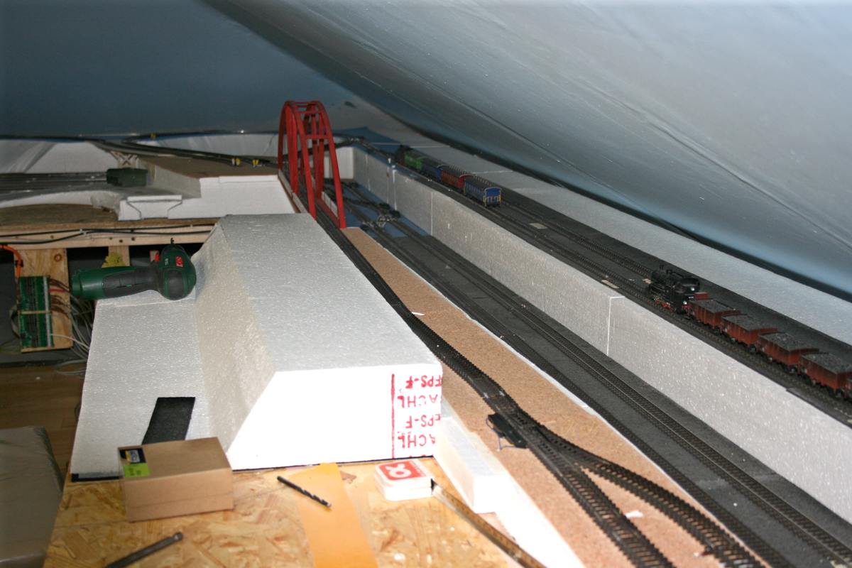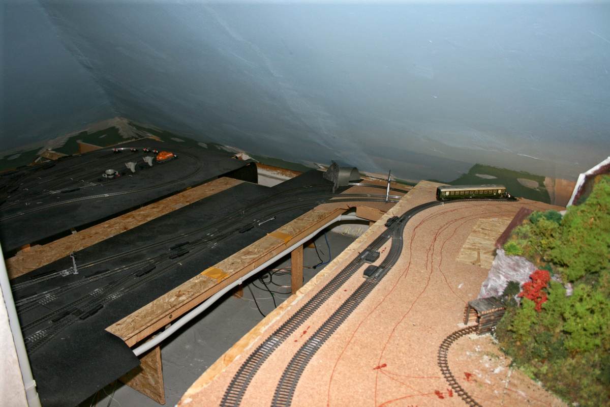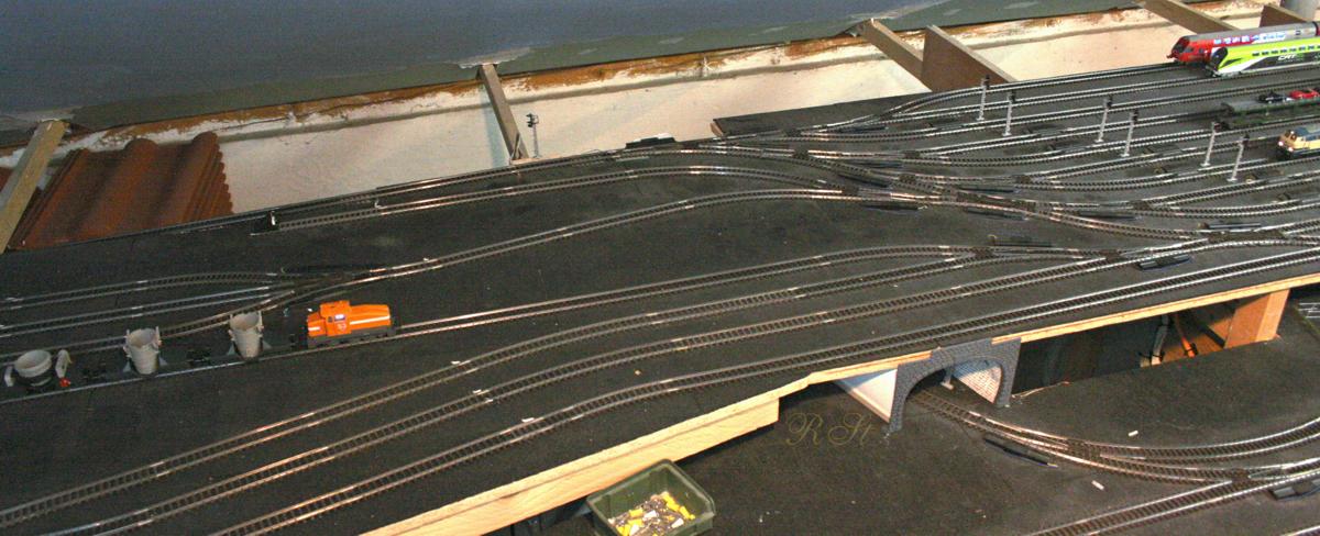 | Anschluß der Nebenbahn vom Gleisdreieck über die hintere Brücke zum Schattenbahnhof |