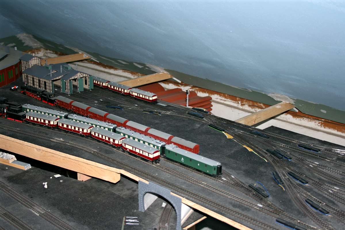 | Der umgebaute Teil vom großen Verschubbahnhof mit dem 3ständigen Lokschuppen. |