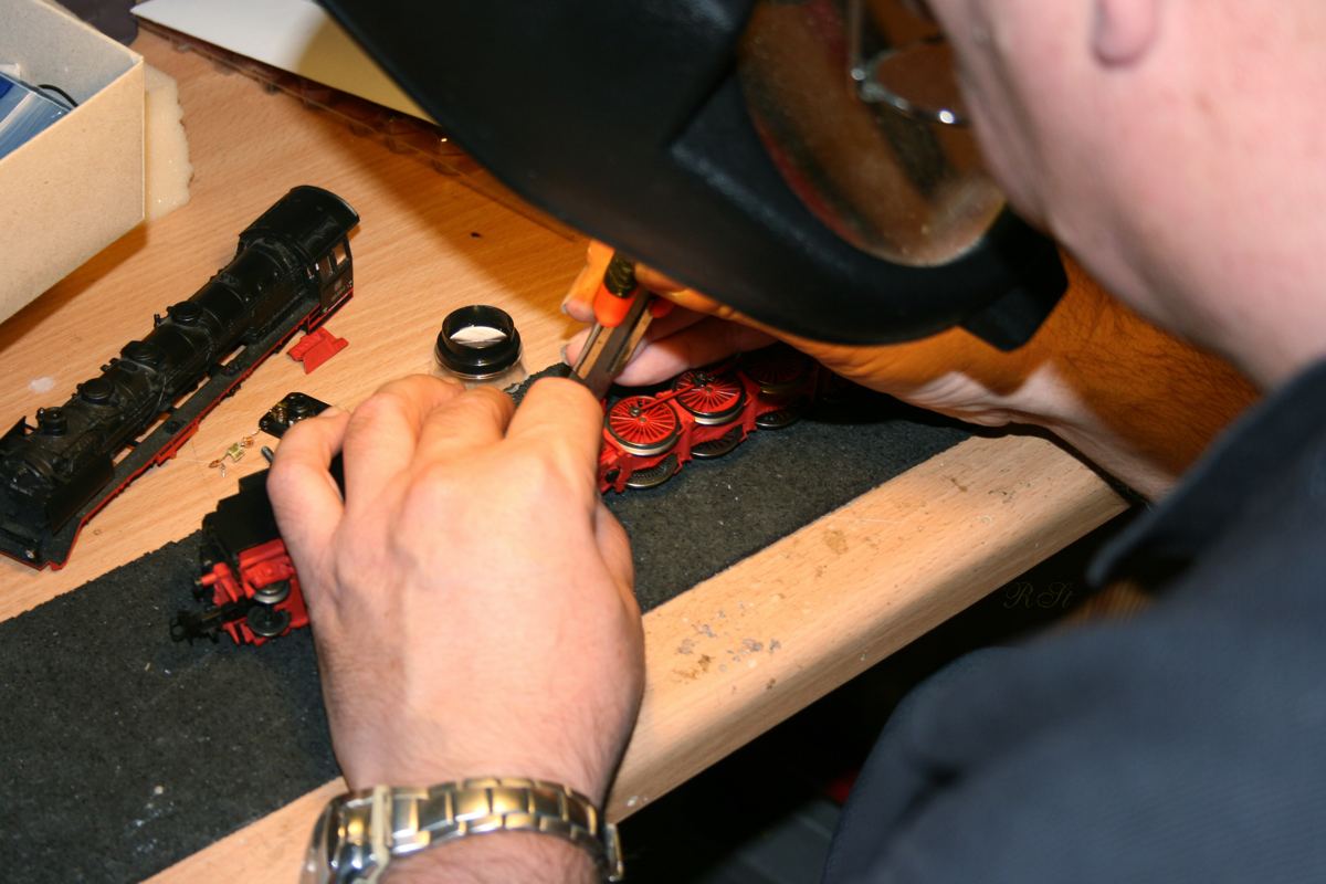 | Thomas bei der Reparatur bzw. beim Umbau einer Dampflok. |