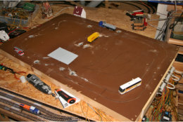 Die letzten Leuchtmasten sind aufgestellt. Baugrube mit Kran wurde platziert, Sandbunker angeschlossen. |