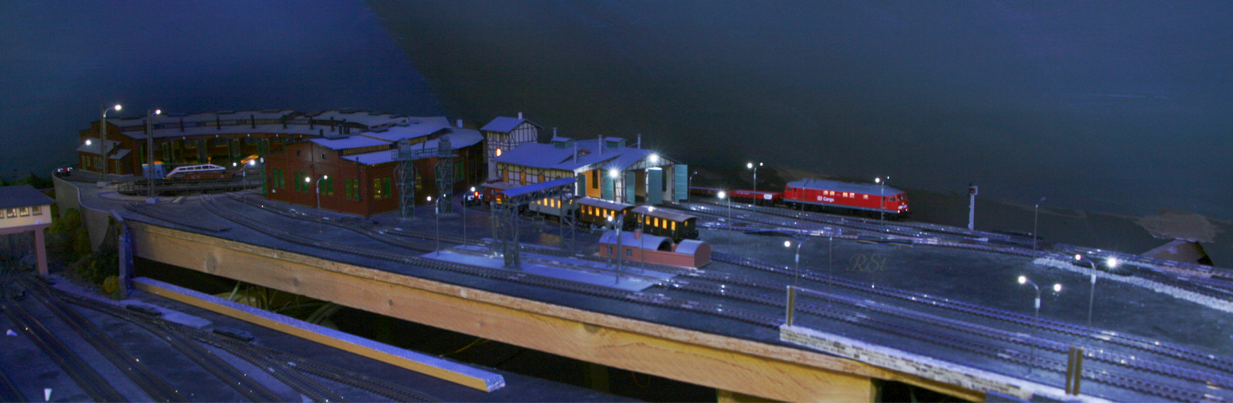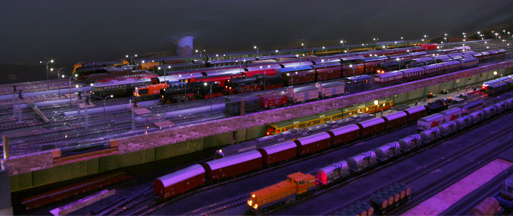 | Überblick auf den nächtlichen Verschub mit vollständiger Beleuchtung. |
