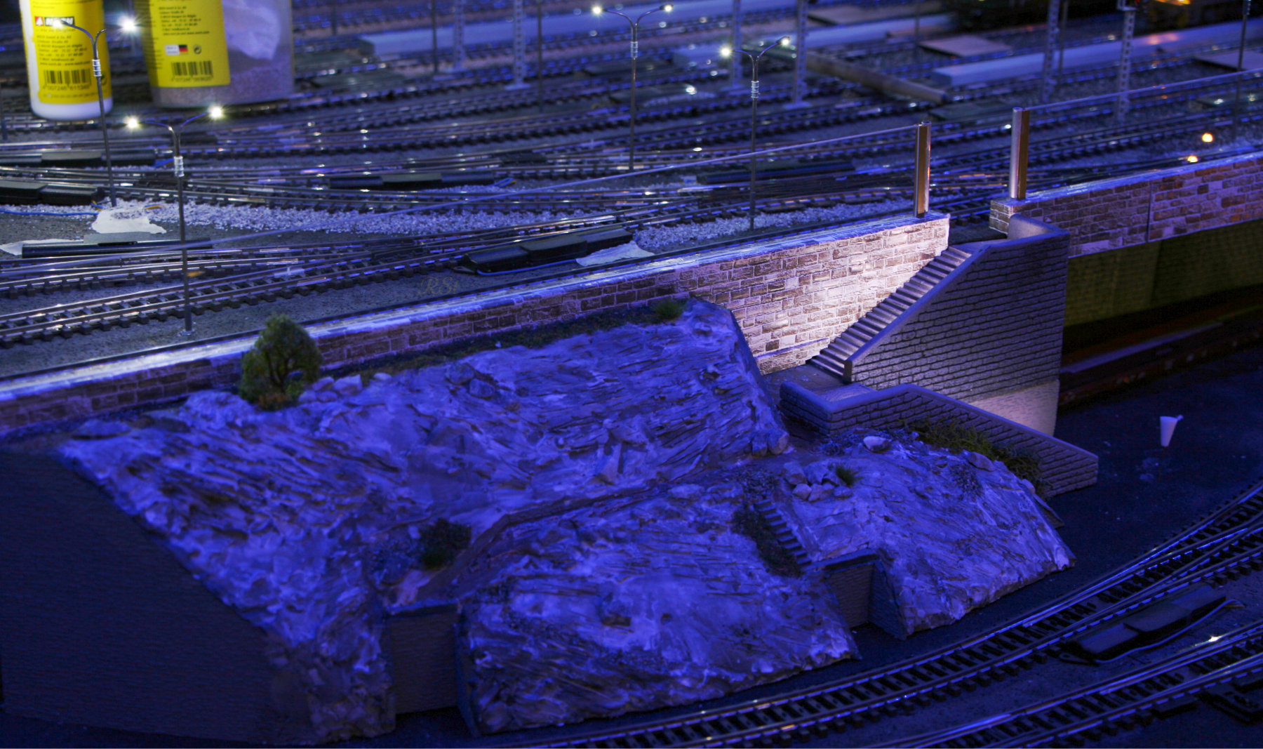 | Beleuchtung der Stiegen zum Verschubbereich ist im Betrieb. |