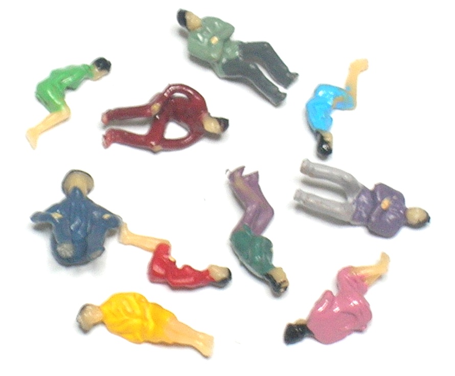 Die 10 sitzenden Figuren eignen sich hervorragend zum Bestücken von Personenwaggonen. Kein Waggon sollte mehr leer seine Kreise um die Modellbahnanlage drehen.