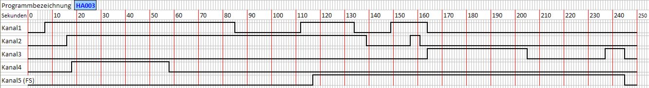 Etwas weiter oben befindet sich der Download einer Zeitdiagrammvorlage. Nach dieser Vorlage wird ihr Programm erstellt. Alternativ zur Vorlage können auch die Schaltzeiten übermittel werden. Jeder Kanal kann maximal 10 mal innerhalb eines Programmablaufs schalten. Wie ein Zeitdiagramm ausschauen kann sehen sie unterhalb des Produktbildes. Anklicken zum Vergrößern.