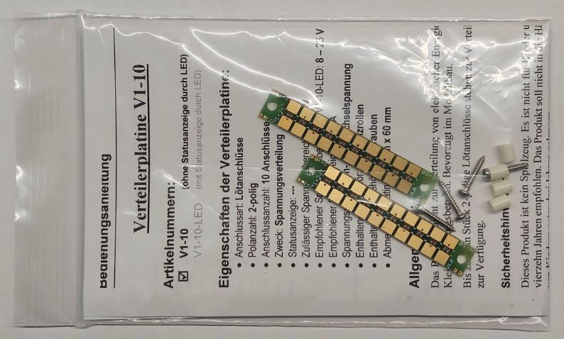Die Platine dient zur Verteilung von elektrischer Energie im Kleinspannungsbereich. Bevorzugt im Modellbau.