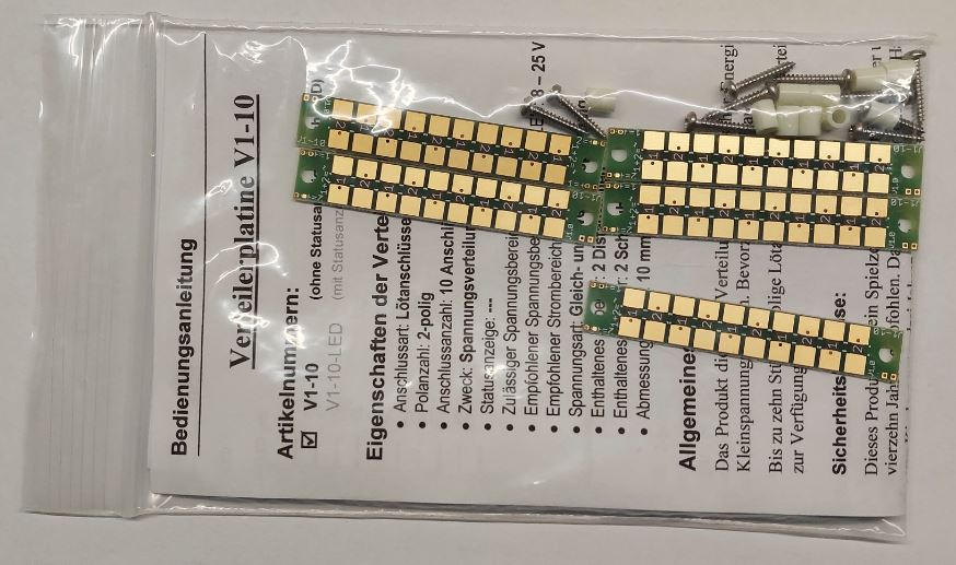 Die Platine dient zur Verteilung von elektrischer Energie im Kleinspannungsbereich. Bevorzugt im Modellbau.
