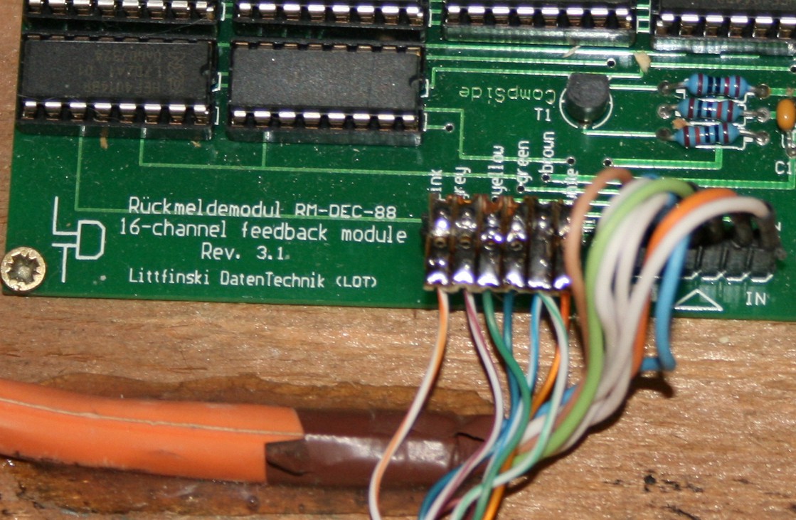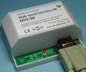 Wer kennt es nicht? Das S88 Rückmeldesystem. Es ist technisch schon etwas in die Jahre gekommen und gilt als sehr störanfällig. Man trifft es hauptsächlich im Dreileitersektor an. Da ist wohl Märklin d'ran schuld. Auch wir haben uns dafür entschieden weil es sehr günstig in der Anschaffung ist und wir es am Anfang einfach nicht besser wussten. Wie auch immer. Es wurden Module angeschafft. Da wir PC gesteuert fahren wurde die Rückmeldung mit einer Rückmeldezentrale von LDT, einem HSI-88, direkt in den PC übertragen. Das HSI-88 verfügte über einen seriellen Anschluss, RS232, zum PC. Auch nicht gerade Stand der Technik. |