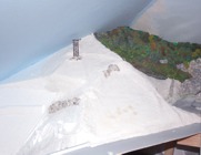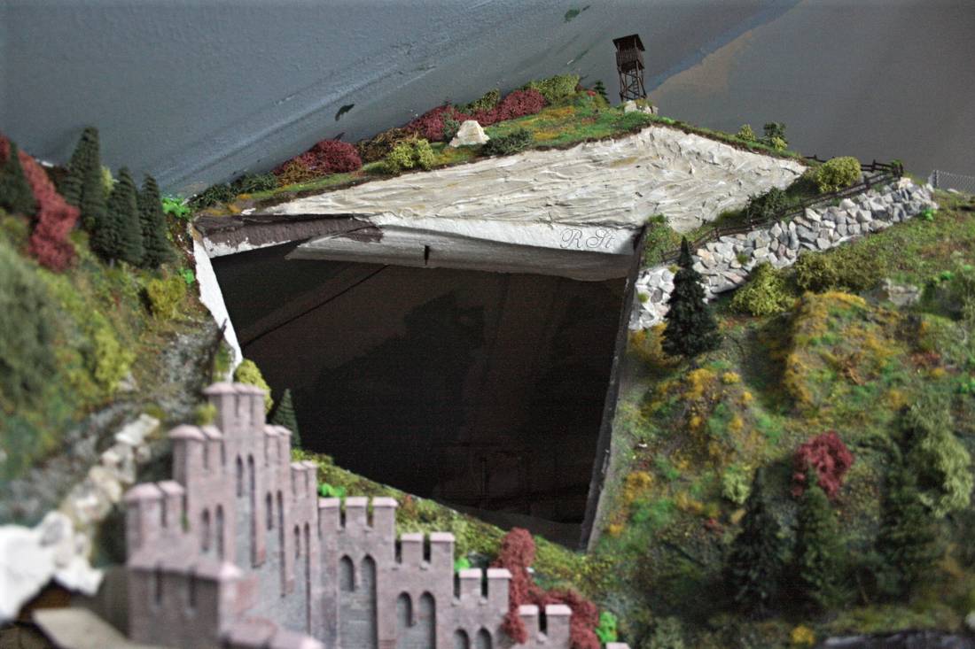 Schon im Mai 2011 war mir klar, sobald das Tal zum hinteren Tunnelportal geschlossen ist, dass sich die weiteren Arbeiten im hinteren Teil schwierig gestalten würden. Um mir zu diesem späteren Zeitpunkt die Arbeit zu erleichtern, schuf ich am rechten Hang eine herausnehmbare Fläche. Sozusagen ein Arbeits- und Wartungsfenster.