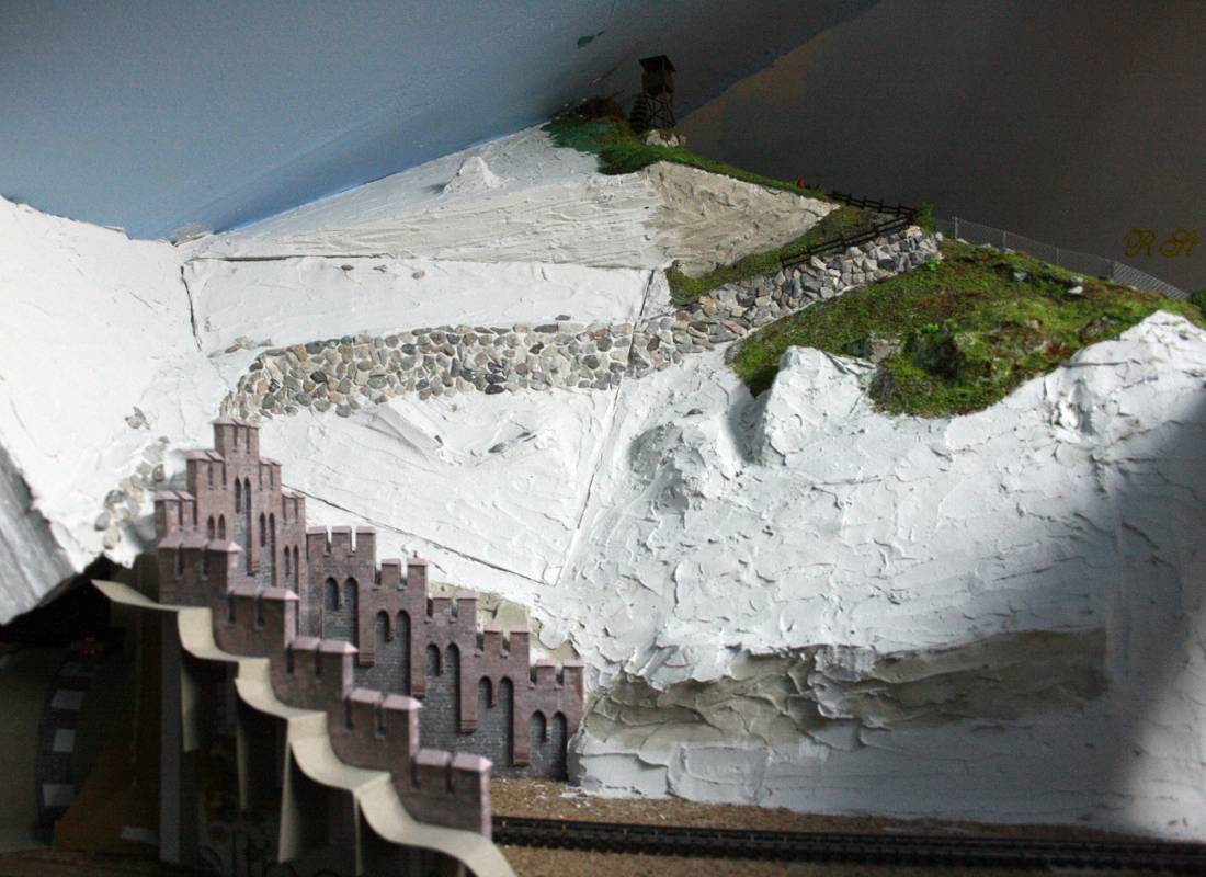 In der Felsgestaltung erkennt man 2 unterschiedliche Gesteinsschichten. Ein bißchen Abwechslung bei der Arbeit mußte sein.